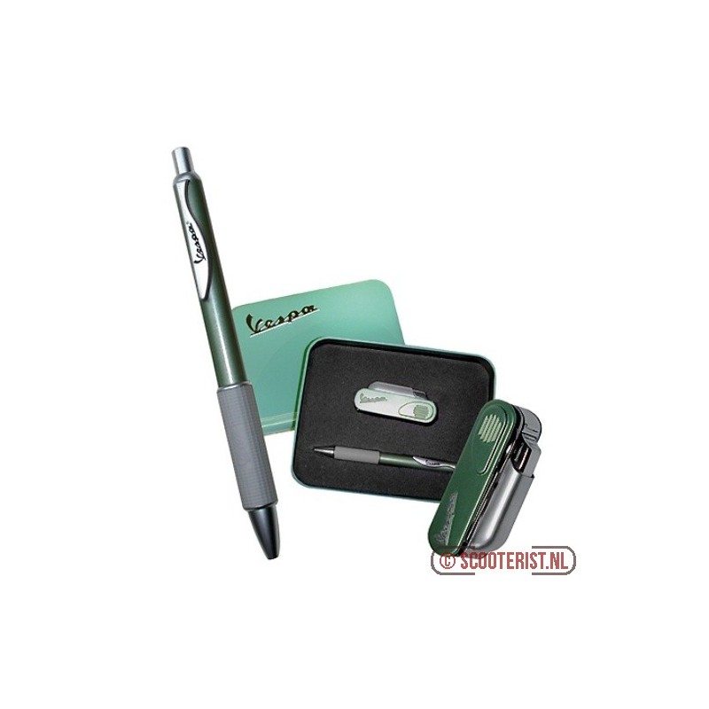 Vespa giftbox met pen en een multifunctionele aansteker met zakmes, schaar en opener.